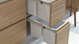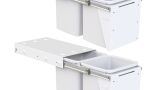 Waste & organics/food scraps can fit in the top 2 bins, recycling can be separated in the lower 2 bins. 60L total storage, in a 350mm wide cabinet.