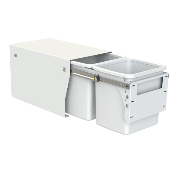*Bench Overhang Clearance - The HCF215D has been designed with over extension drawer runners which allow for a bench overhang of up to 35mm, allowing the back bucket to come clear independent of the front bucket. If more bench overhang clearance is required, please mount the bin lower in the cabinet.