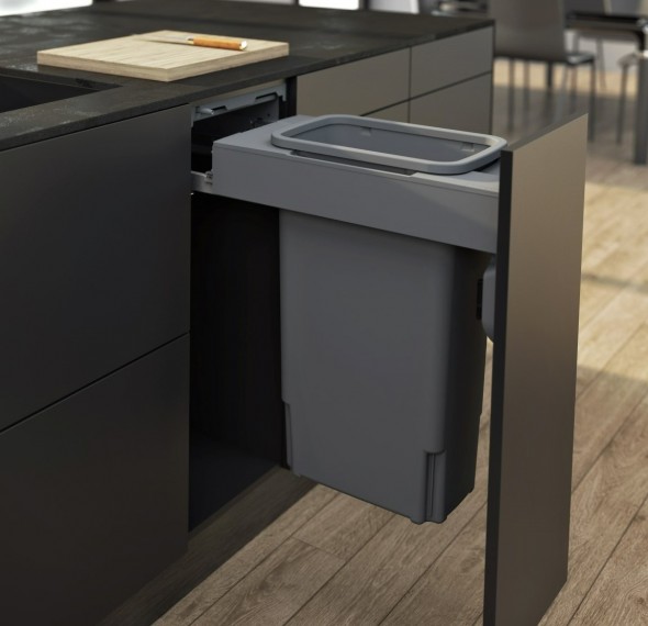 • Push to open — compatible with electronic push to open systems (such as Blum, Grass), so a simply bump on the door front and the bin will open.