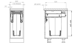 *Bench Overhang Clearance - The CR350-135D has been designed with over extension drawer runners which allow for a bench overhang of up to 110mm, allowing the back bucket to come clear independent of the front bucket. If more bench overhang clearance is required, please mount the bin lower in the cabinet.