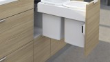 • Active Lid — Hidden from sight at the top of the bin inside the cabinet and drops down to close over the buckets when the bin is closed. The motion of the lid is synchronised with the opening and closing action of the bin, which lets you keep your hands free to simply drop waste into the bin.