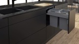 • Active Lid — Hidden from sight at the top of the bin inside the cabinet and drops down to close over the buckets when the bin is closed. The motion of the lid is synchronised with the opening and closing action of the bin, which lets you keep your hands free to simply drop waste into the bin.
