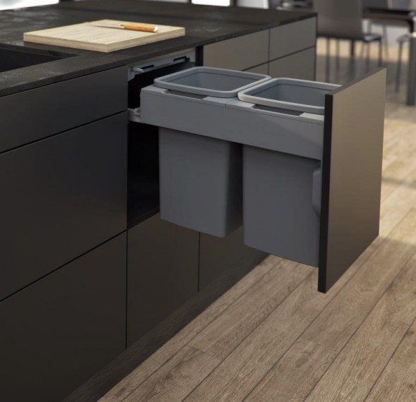 • Push to open — compatible with electronic push to open systems (such as Blum, Grass), so a simply bump on the door front and the bin will open.