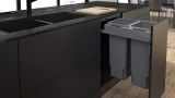 • Active Lid — Hidden from sight at the top of the bin inside the cabinet and drops down to close over the buckets when the bin is closed. The motion of the lid is synchronised with the opening and closing action of the bin, which lets you keep your hands free to simply drop waste into the bin.