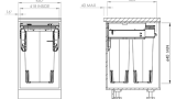 *Bench Overhang Clearance - The CR450-235 has been designed with over extension drawer runners which allow for a bench overhang of up to 40mm, allowing the back bucket to come clear independent of the front bucket. If more bench overhang clearance is required, please mount the bin lower in the cabinet.