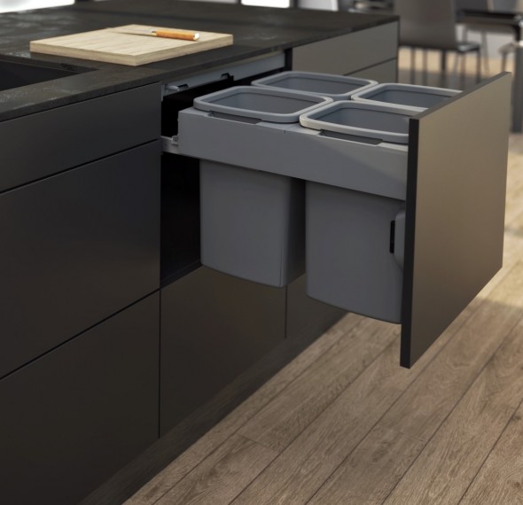 • Push to open — compatible with electronic push to open systems (such as Blum, Grass), so a simply bump on the door front and the bin will open.