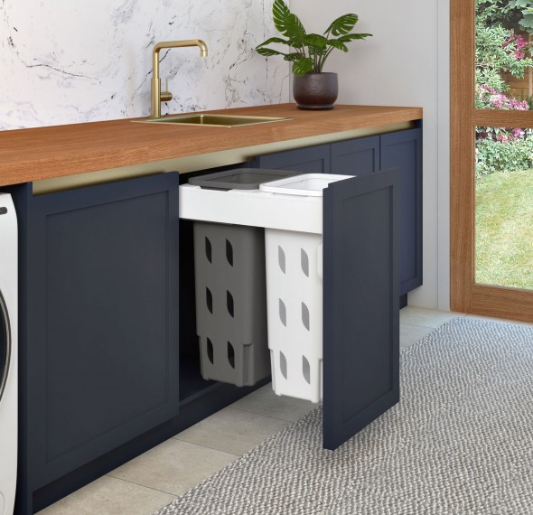 • Push to open — compatible with electronic push to open systems (warranted to work with Blum or Grass systems), so a simple bump on the door front and the Concelo Hamper will open. See FAQ section of website for more detail.